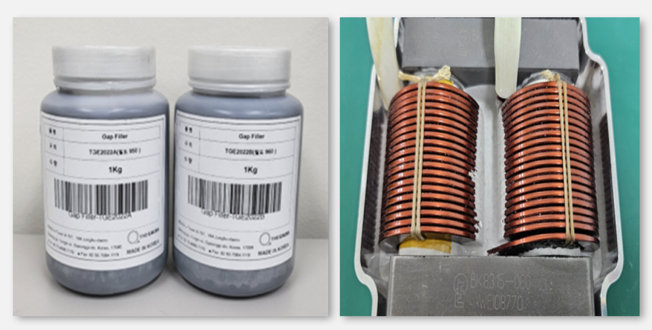 저점도 2액형 방열액으로 우수한 유동성과 내침투성을 갖추어 복잡한 구조의 기기에도 안정적으로 적용되며, 전기차 ICCU, 급속 충전기, ESS 및 데이터 센터 등 고효율이 요구되는 산업 분야에서 핵심적인 열 관리 솔루션 역할을 수행합니다.